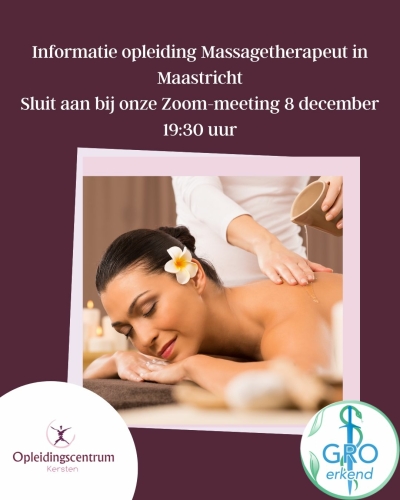 Op 8 december om 19:30 uur organiseren we een online informatiebijeenkomst via Zoom over de Opleiding Massagetherapeut in Maastricht.